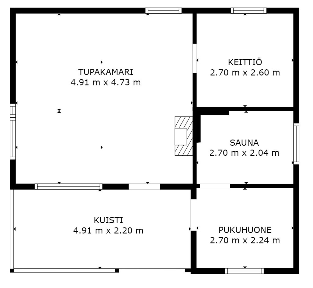 - 45 m2 + katettu kuisti 11 m2 + pieni kesäkeittiö